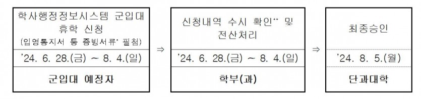 <2024학년도 2학기 군입대 휴학바구니(사전휴학) 신청 안내>