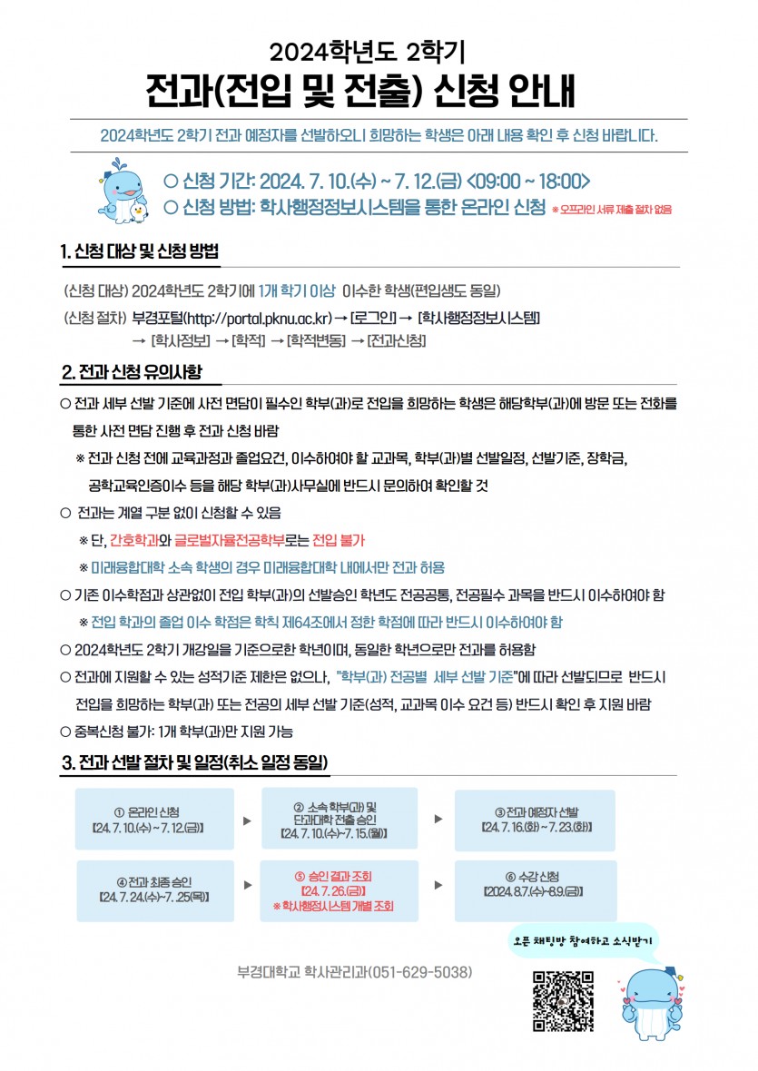 2024학년도 2학기 전과 실시 계획 안내
