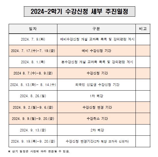 2024-2학기 학부 예비수강신청 실시