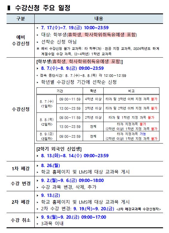 2024학년도 2학기 재(복)학생, 재입학생 등 등록금 납부 안내