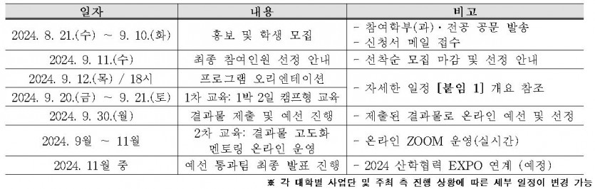 라. 운영일시: 2024.09.12.(목) ~ 2024.11월 중 / 산학협력 EXPO 연계 진행 예정